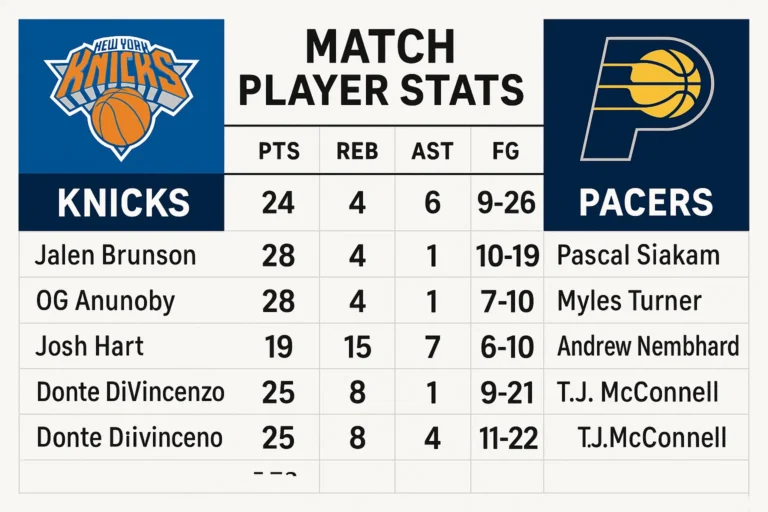 The Pacers vs Knicks match player stats is a topic that basketball fans are eager to analyze after every game. Whether it’s the jaw-dropping performances or the game-changing moments, understanding how each player performed can provide deeper insights into the match. In this article, we’ll break down the stats, highlight key players, and analyze how…
